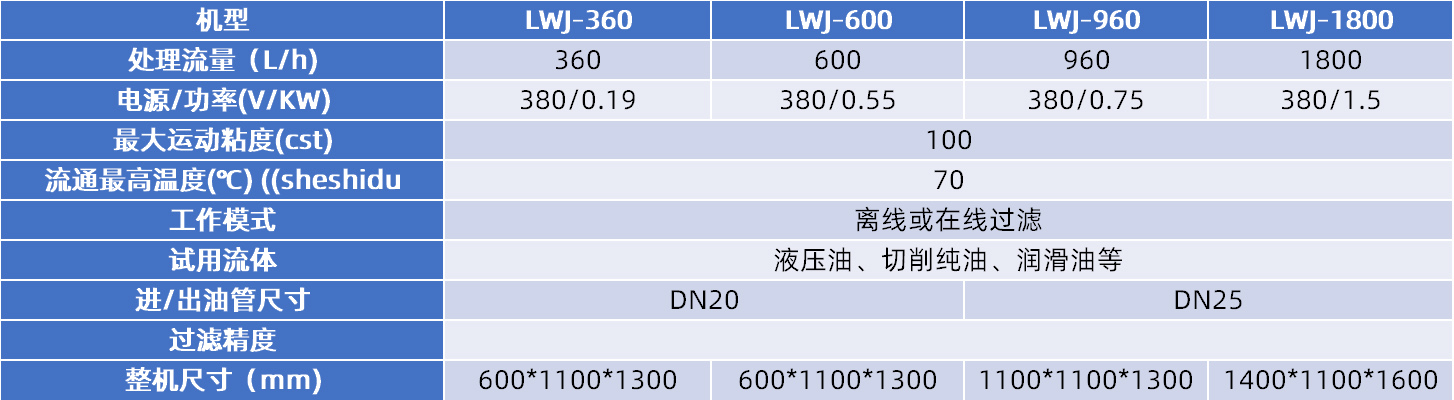 用于液压油、切削纯油、润滑油、食品机械油、透平油等各类油品的净化,去除油品中的水分和杂质。